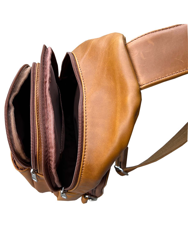 -Adjustable wire reinforced shoulder strap, metal loops on the back bottom are to adjust which side the strap attaches